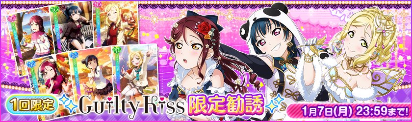 ラブカストーン30個で11連勧誘を1回限定で行えるお得なGuilty Kiss限定勧誘を実施いたします✨