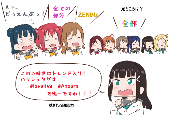 小宮有紗さん「紅白で刀剣乱舞がずっとトレンド入りしてたのにAqoursは名前が乱立していたのが悔しい。これからは #lovelive #Aqours というタグで統一してください」