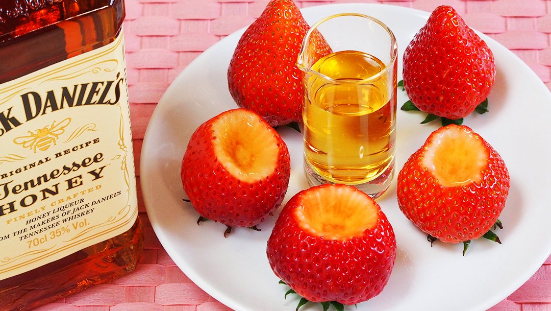 いちごの先端をカットし、少しくり抜く!そこに「ジャック ダニエル テネシーハニー」を注ぎ、こぼさないようにいちごをパクリっ!はちみつやナッツのフレーバーといちごのジューシーさが口中に広がって…うんまーい! pic.twitter.com/Xky80RhVOs2019年3月8日 08:00