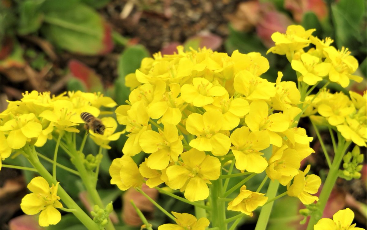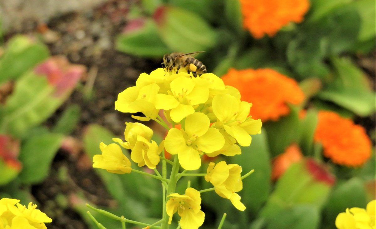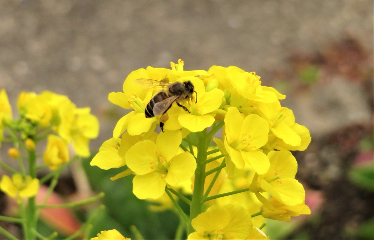 ということで #本校 の #菜の花 でせっせと #蜜 を集める #蜜蜂 くんです。🐝