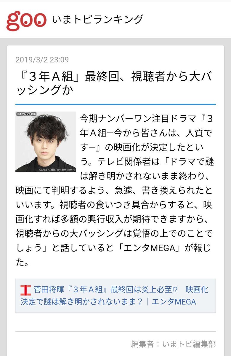 #三年A組 #菅田将暉 pic.twitter.com/YzC5aGRf1s2019年3月10日 23:13