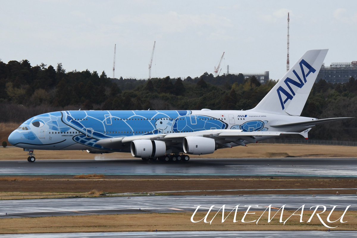 #全日空 が5月からハワイ線で新たに運航する世界最大級の旅客機「エアバス #A380」が成田空港に到着しました。機体にはハワイで神聖な生き物とされるウミガメが描かれています。(諫) #エアバス #ANA pic.twitter.com/VKz7lCkegu
