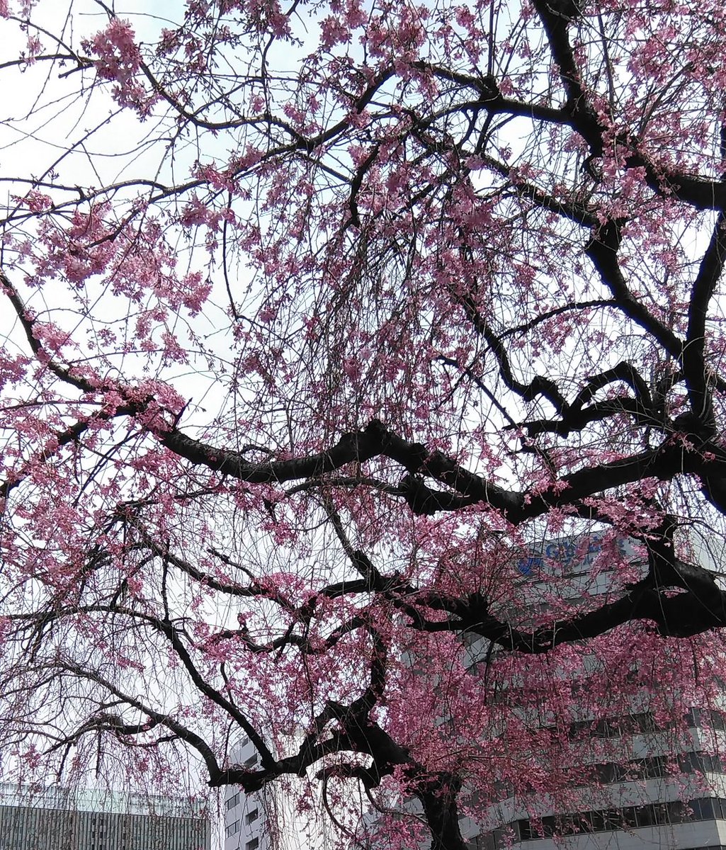 ZIP-FM前のシダレザクラも今日一気に開花しました🌸