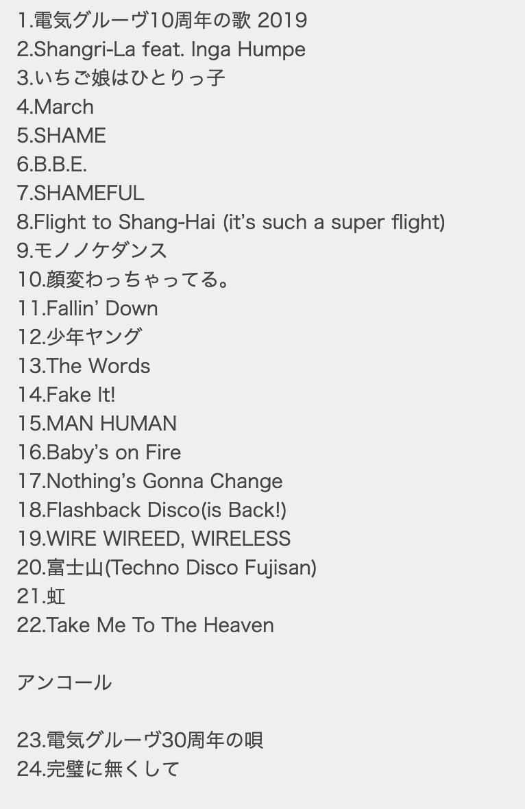 本当に楽しかった。5時間ありがとう。セトリです。間違いないと思いますが、あったら教えてください。電気グルーヴ大好き!!!