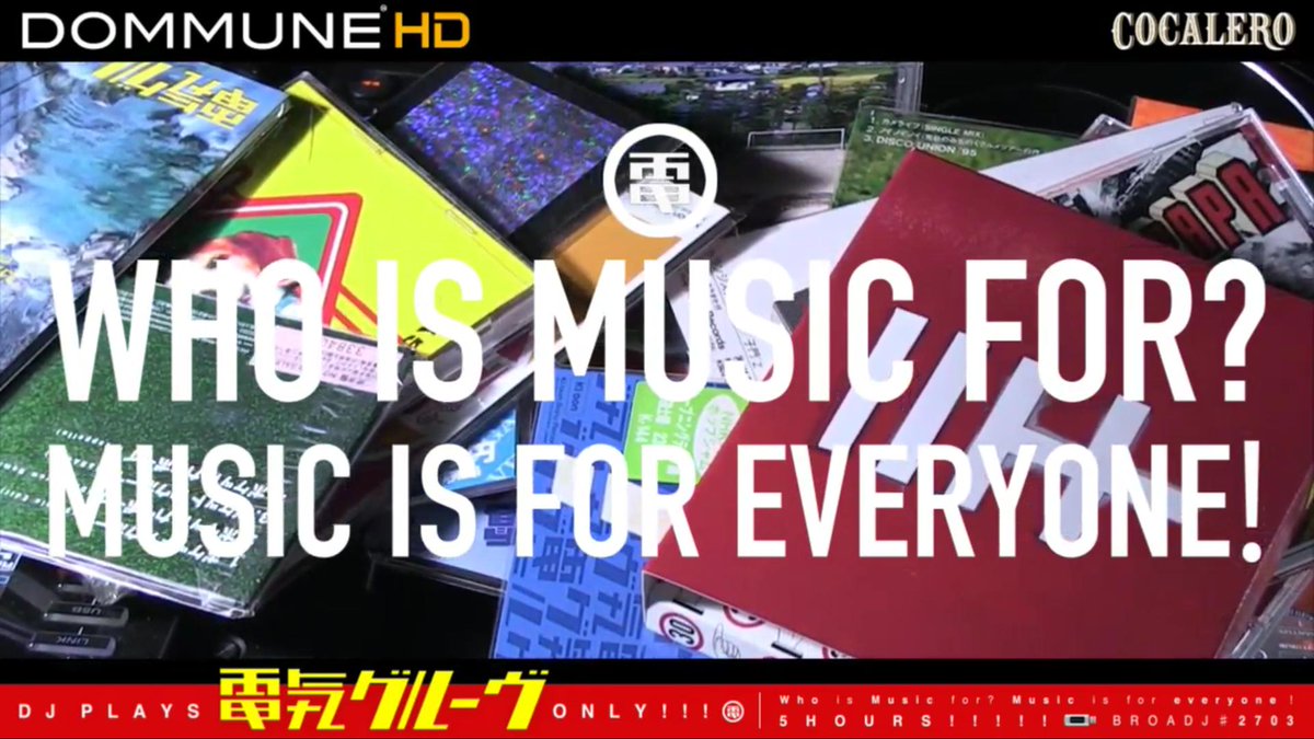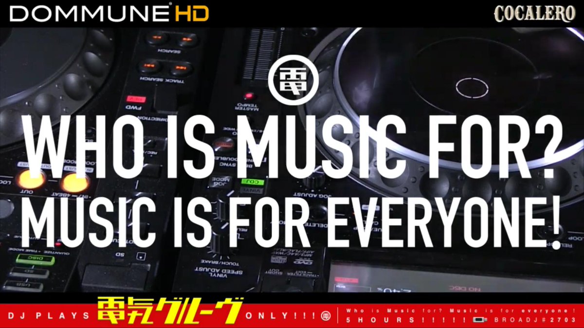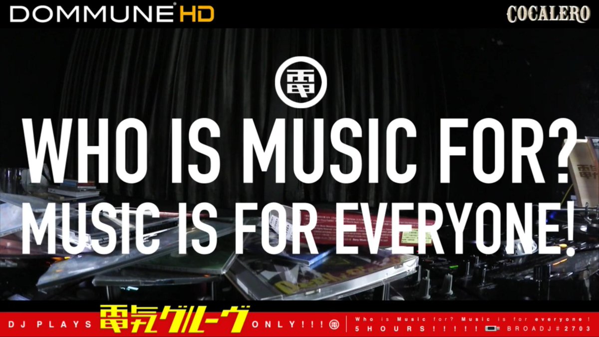 いったい音楽は誰のものなのでしょうか?このジレンマを乗り越えようと音楽メディアであるDOMMUNEは、ミュージックラヴァーの意思を受け電気グルーヴの音楽のみがプレイされるプログラムを全世界に向けて配信。これはDOMMUNEがいま世に投げかけるべき精一杯の音楽愛。 dommune.com/reserve/2019/0… #dommune