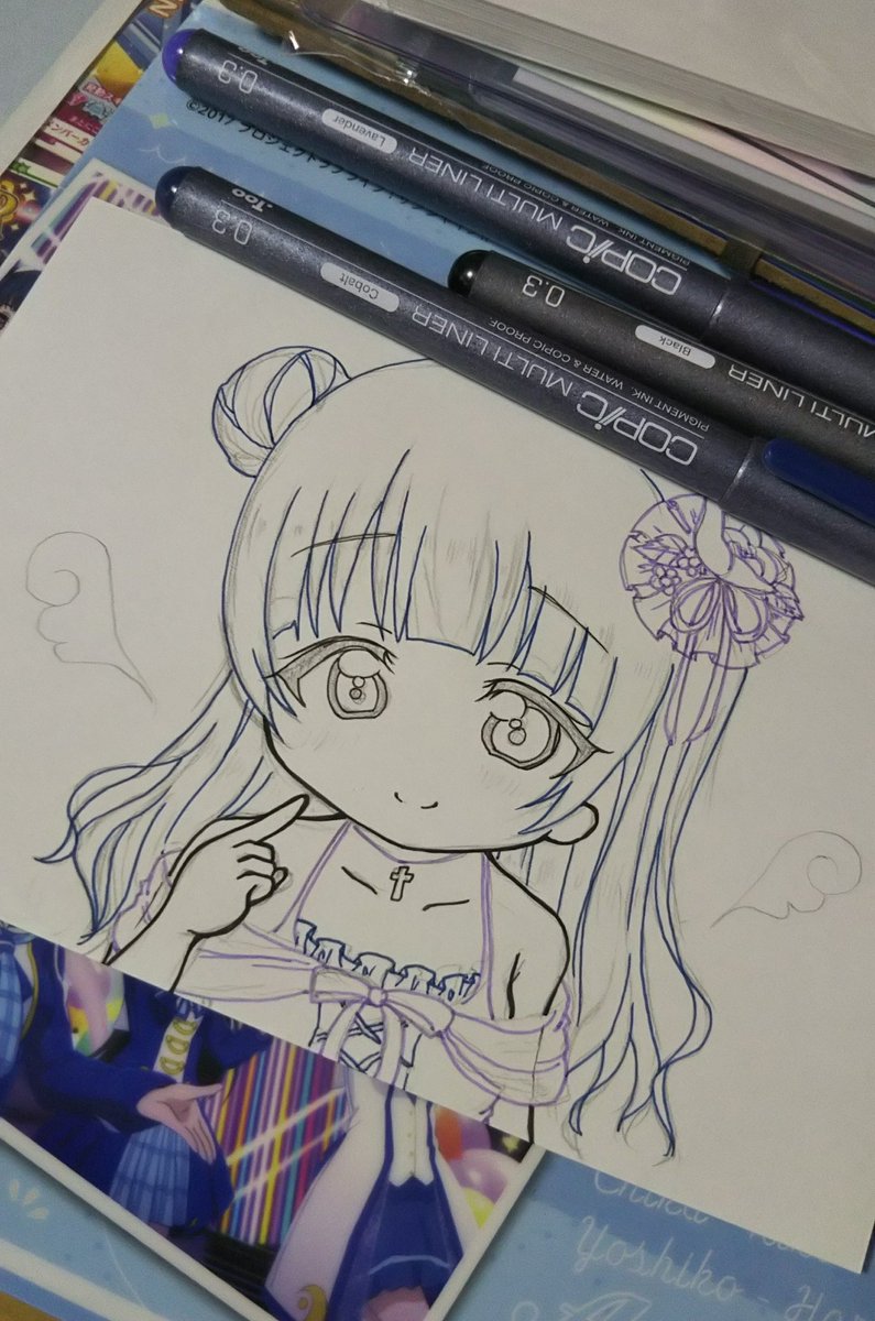 使用した画材→色鉛筆、パステル、ホワイト、コピックマルチライナー😉💕