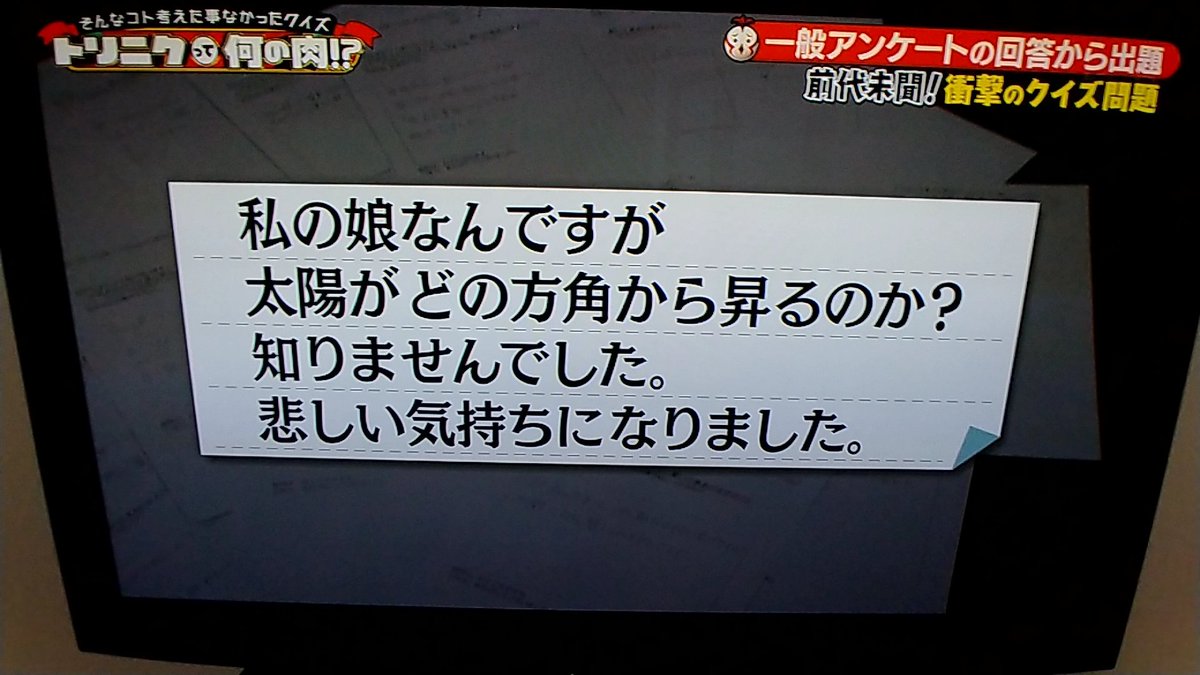 あと3週間で令和が始まるというのに昭和と平成で解答者を括るクイズ番組ってちょっと時代遅れだと思うなあ。平成生まれったってもう30超えてる人もいるし。ABCは何でこの番組をレギュラー化させたんだろ。 #トリニクって何の肉
