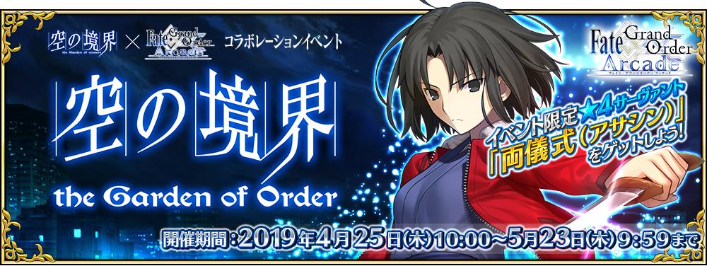 『Fate/Grand Order Arcade』にて、本日4月25日(木)AM10:00より『FGO Arcade』初のコラボレーションイベント「空の境界/the Garden of Order」を開始!イベントに参加し「★4(SR)両儀式(アサシン)」を獲得しましょう!詳しくは→ arcade.fate-go.jp/news/2019-04-2… #FGO #FGOAC pic.twitter.com/9dYfJdsi8N2019年4月25日 10:01