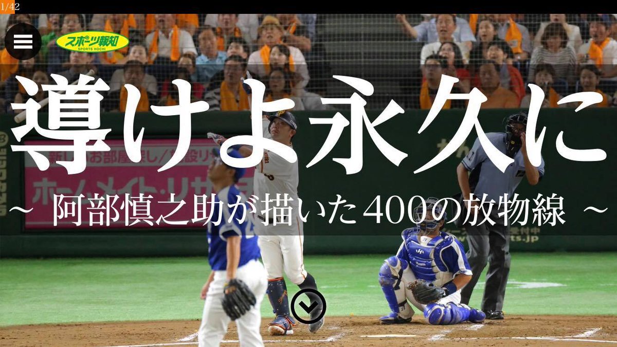 スポーツ報知では巨人 #阿部慎之助 選手の #通算400号 本塁打達成を記念して、「導けよ、永久に~ #阿部慎之助が描いた400の放物線 ~」と題して、その軌跡を振り返るスペシャルコンテンツを公開!ぜひチェック! hochi.news/special/2019/g… #ジャイアンツ #巨人 #読売ジャイアンツ #おめでとう慎之助 pic.twitter.com/EKUMm4kTb9