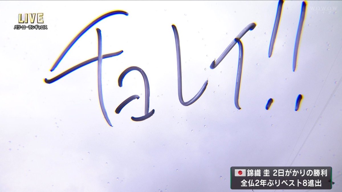 錦織が4回戦勝利後にカメラに書いた「チョレイ」はテレ東に対してのツッコミだったのね!