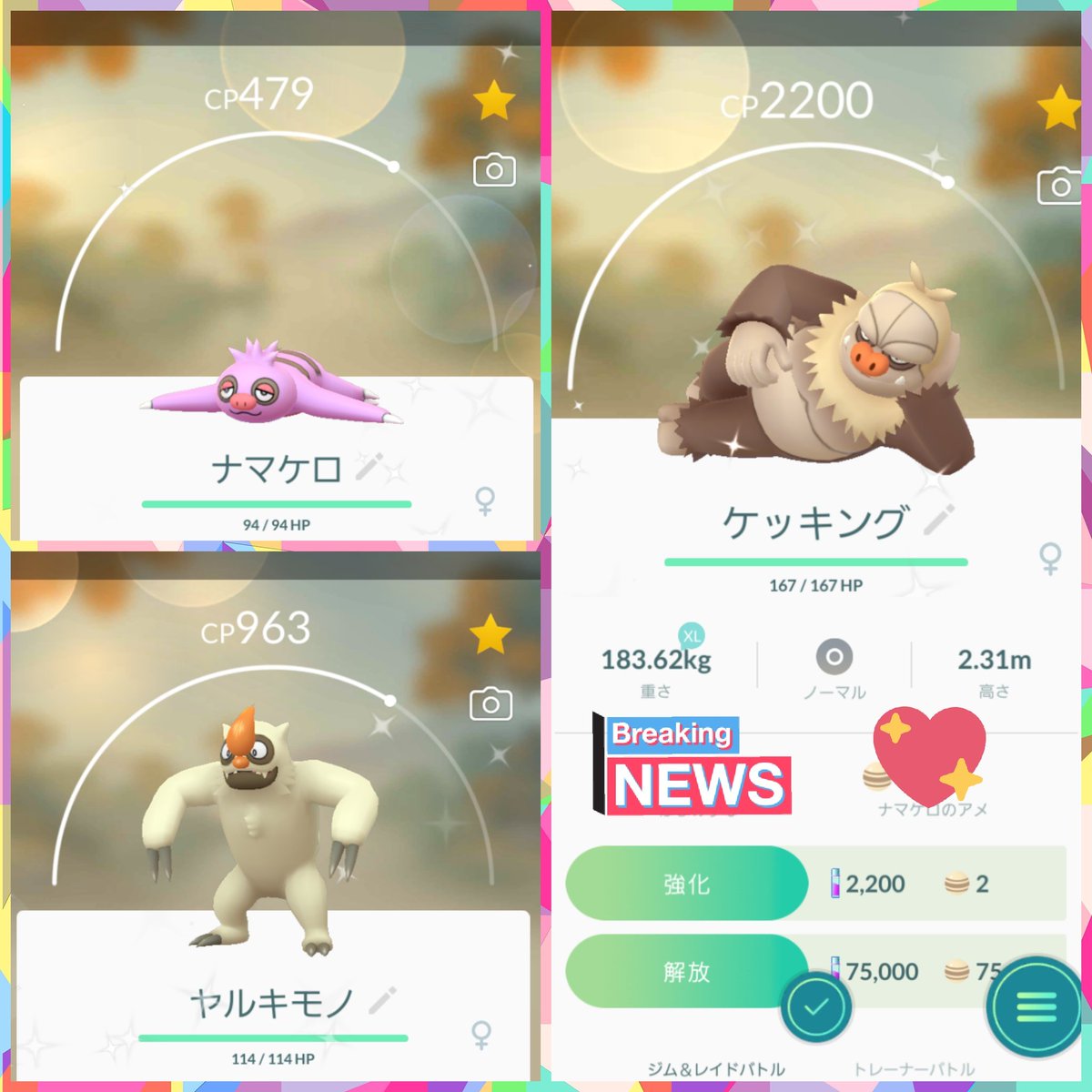 色違い9匹、通常色の個体値96をGETしてナマケロのコミュニティデイは終了でした😊