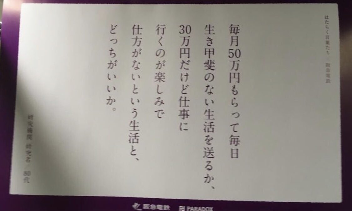 これ文章考えたやつが頭おかしいのは言わずもがななんだけど、これでOK出したヤツも総じて頭おかしいんだよな、こういうのが世に出るまでに何個もチェックがあると思うんだけど。ていうか、世の中には手取り20万も行かずに生き甲斐のない仕事してる人もいるってことを知らないんだろうな #手取り30万 pic.twitter.com/XRtvTn7Ccz