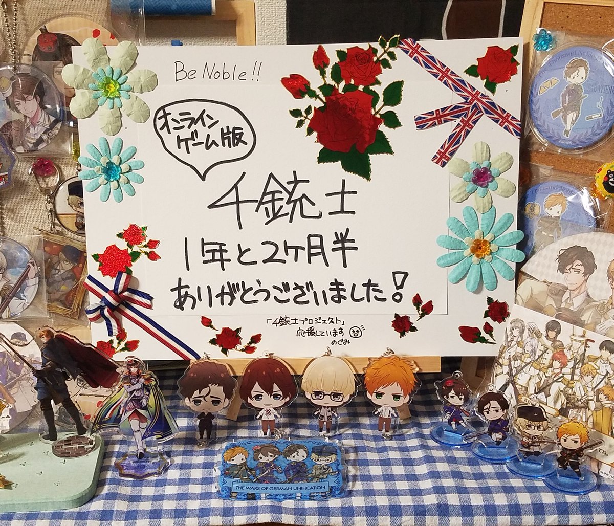 本日千銃士のサービス終了になりまして、運営さん、イラストレーターさん、キャストさん始め千銃士を世に送り出して頂いた皆様に感謝の気持ちを込めて細やかながらお礼ボードを作りました。