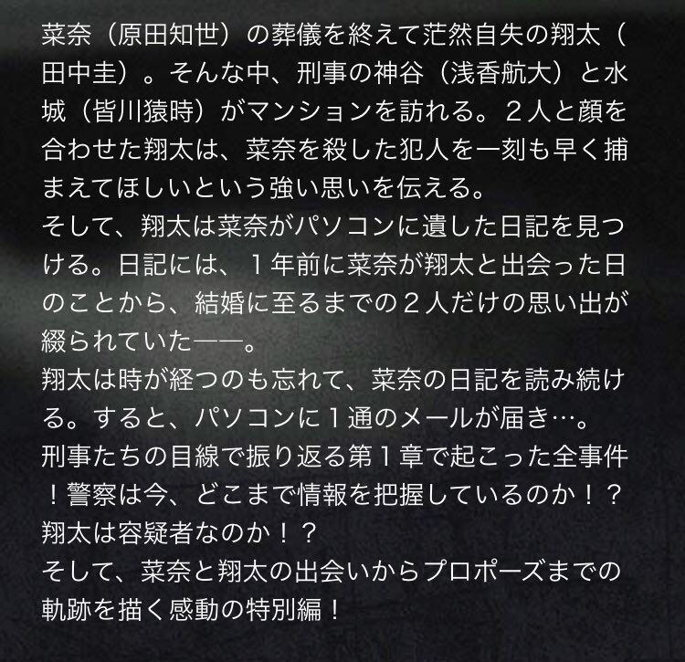 そして来週は、菜奈と翔太の出会いから、結婚に至るまでを描いた感動の特別編を放送します‼️