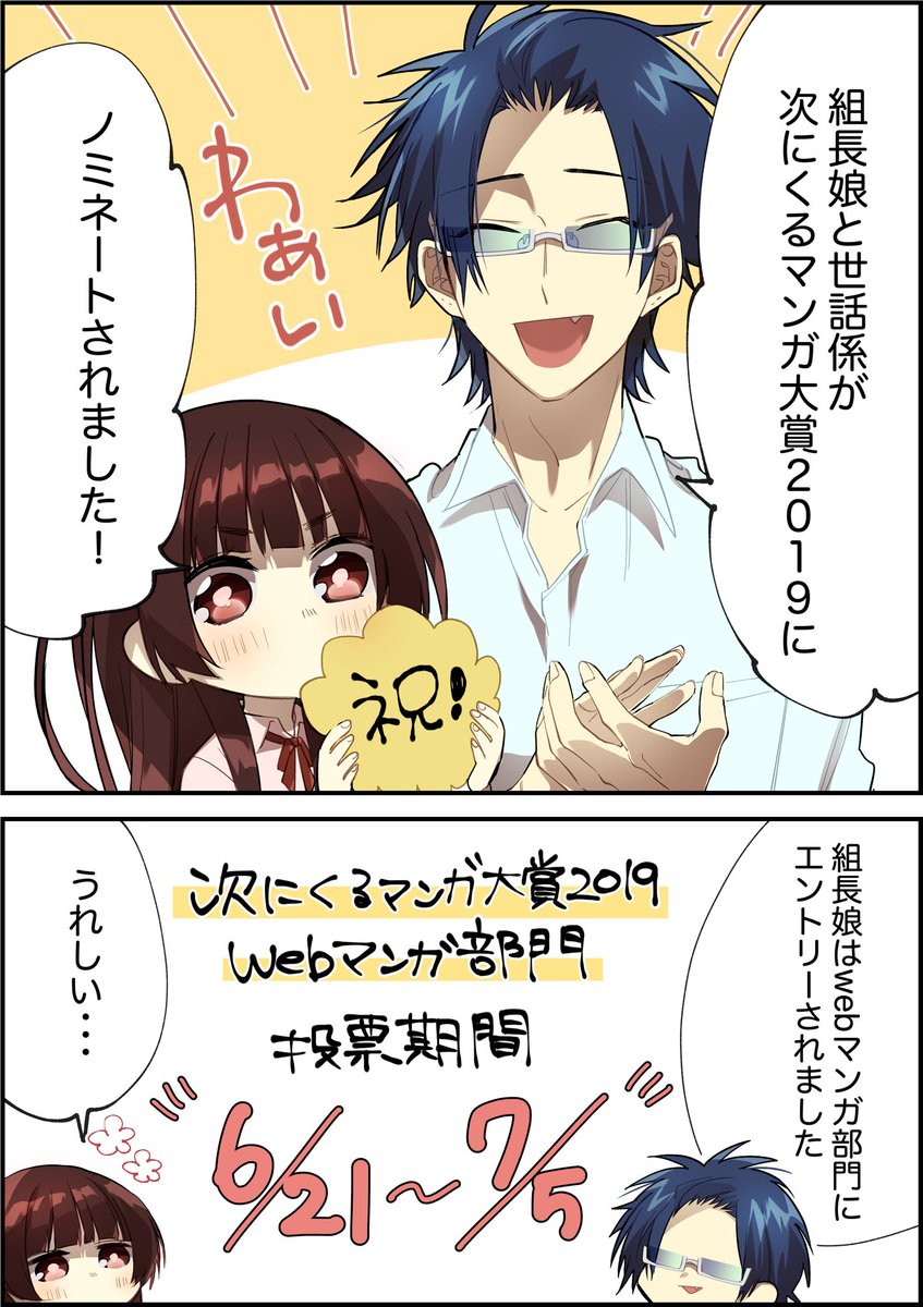 【次にくるマンガ大賞2019】Webマンガ部門に!!『組長娘と世話係』がノミネートされました!!!