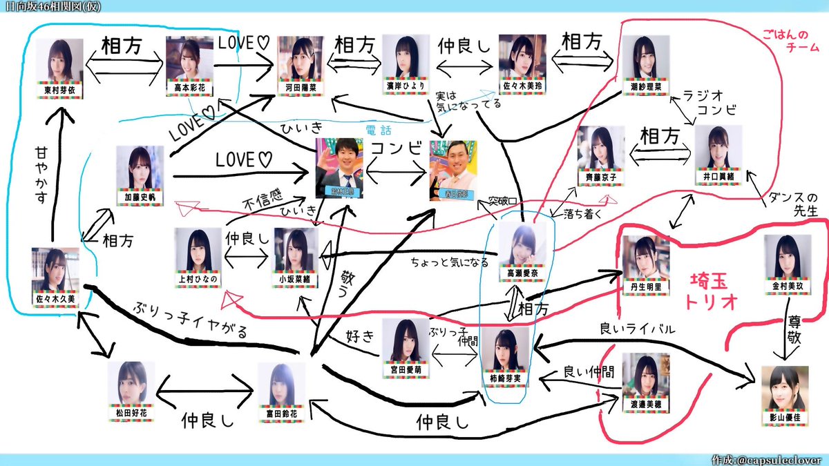 番組の画像を元に日向坂相関図作ってみたけど