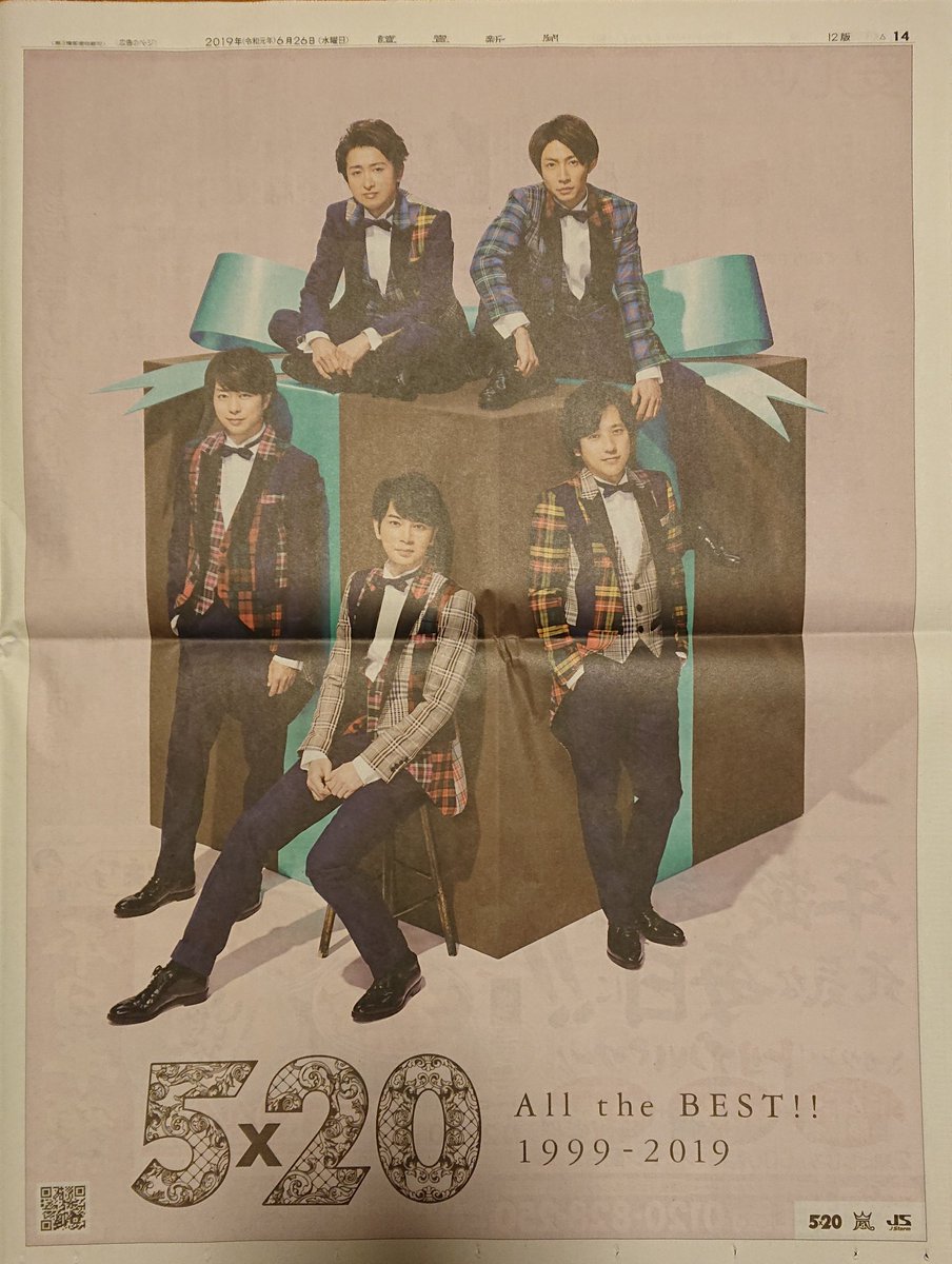 #嵐 #5x20 #嵐5x20 #ベストアルバム #読売新聞 pic.twitter.com/Tv5GCpCph22019年6月26日 08:35