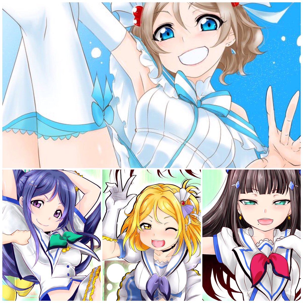 ラブライブ!、Aqours、おめでとうございます。これからもずっと見守っていかせて下さいね #ラブライブ9周年 #Aqours4周年 (コミケ原稿真っ最中なので過去絵でごめんなさいっ。このμ’sのは初めて描いたフラスタ絵でした) pic.twitter.com/DB0vDgYo6W