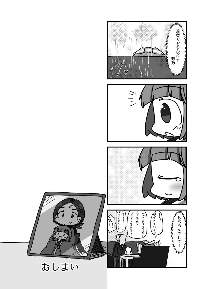芳乃ーーーーーー!!!誕生日めでてぇなぁ~~~~~~!!!!ということでシンステで発行されました芳乃と人外ばばさま合同に寄稿した物です!たまには…爆発せえへんオチも…描くんやで…!!!