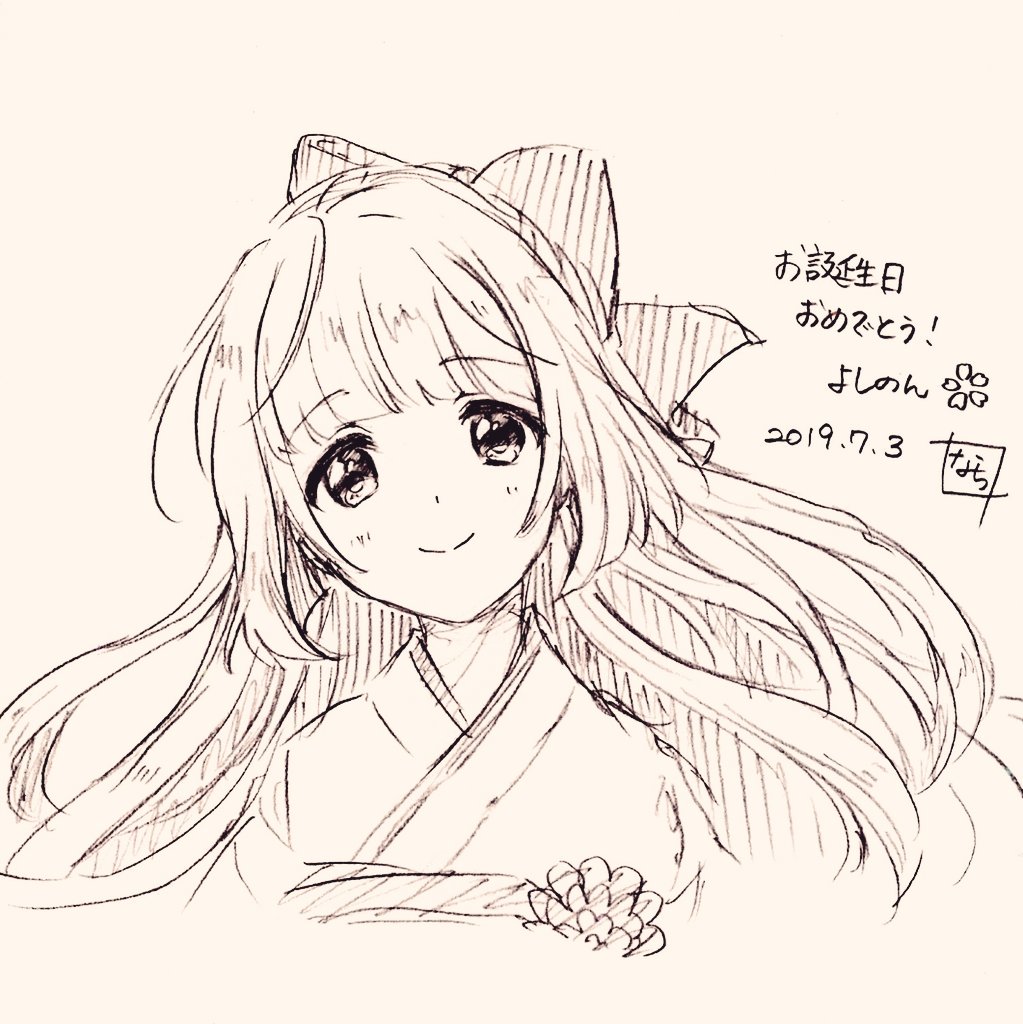 よしのんおめでとうー 和装も洋装も似合うので、どの衣装で描くか悩みまして… #依田芳乃生誕祭2019 pic.twitter.com/9gJpuK7JUC
