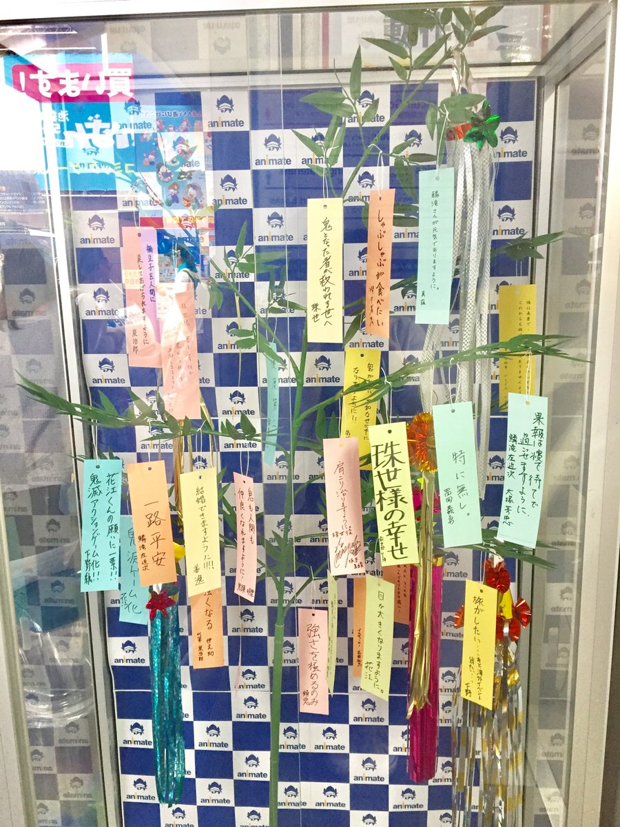 【 #鬼滅の刃 情報】本日は #七夕 鬼滅の刃のキャラクター・出演キャスト様が願い事を書いた短冊が飾られた笹を展示しております♪本日は1階店頭に展示中アニ!展示期間は7/13(土)まで!ぜひ、見に来てくださいアニ☆ pic.twitter.com/2dMwffu7dZ