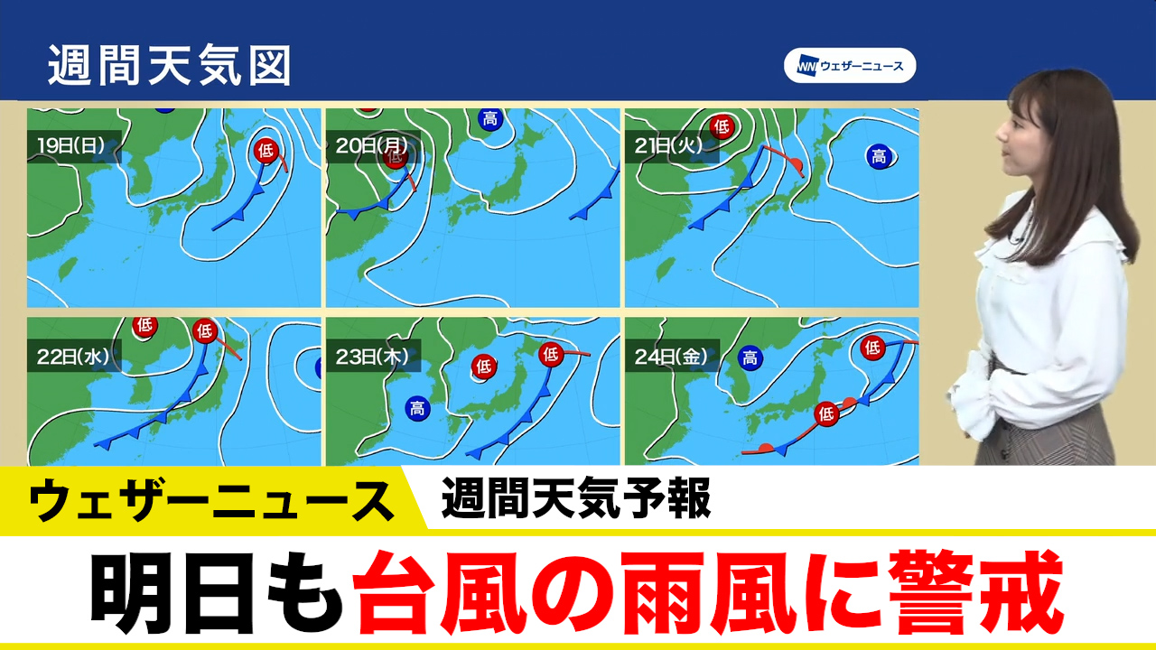 週間天気予報/明日も台風14号の雨風に警戒