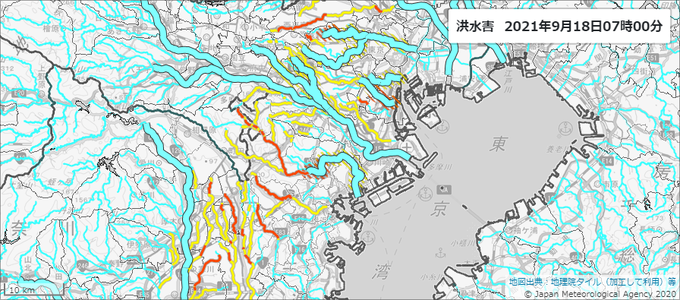 土砂災害、川の氾濫、低い土地の浸水に警戒が必要です。