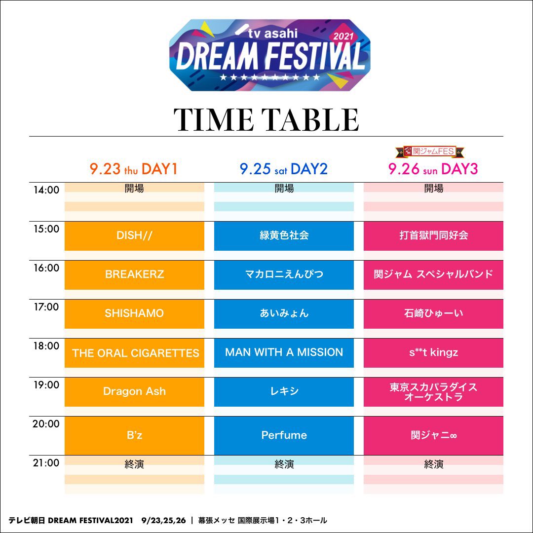 【ch1】11月放送決定🎸2年ぶり10回目の開催✨ #テレビ朝日ドリームフェスティバル2021 #drefes 出演アーティストは💁🏻♂️ #Bz #THEORALCIGARETTES #SHISHAMO #DISH// #DragonAsh #BREAKERZ #あいみょん #perfume 詳しくはこちらtv-asahi.co.jp/ch/contents/va… pic.twitter.com/Uw1SWznSPV