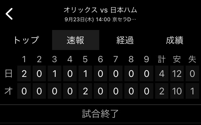 【試合結果】9/23京セラD大阪