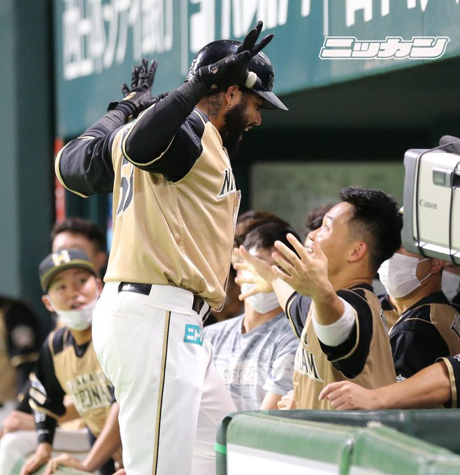 #ヤチパワー を受けて貴重な先制弾を放った #ロニー・ロドリゲス 選手!もう1人のアミーゴ #王柏融 選手と歓喜のハグを交わす瞬間です👐
