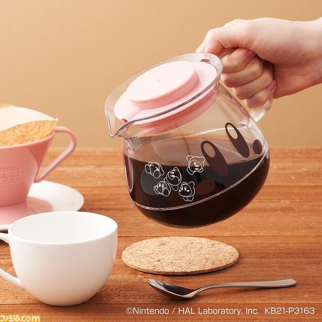 ハンバーガーに飛びつき、ピザを食べてお腹いっぱいで寝そべるカービィがかわいすぎて天使。コーヒーサーバーやバッグなど、実用性の高いアイテムも揃っている。 #カービィ
