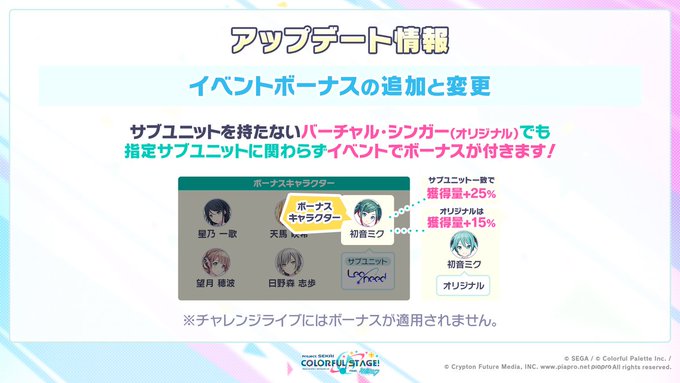 サブユニットを持たないバーチャル・シンガーにも、イベントボーナスが付くように変更✨