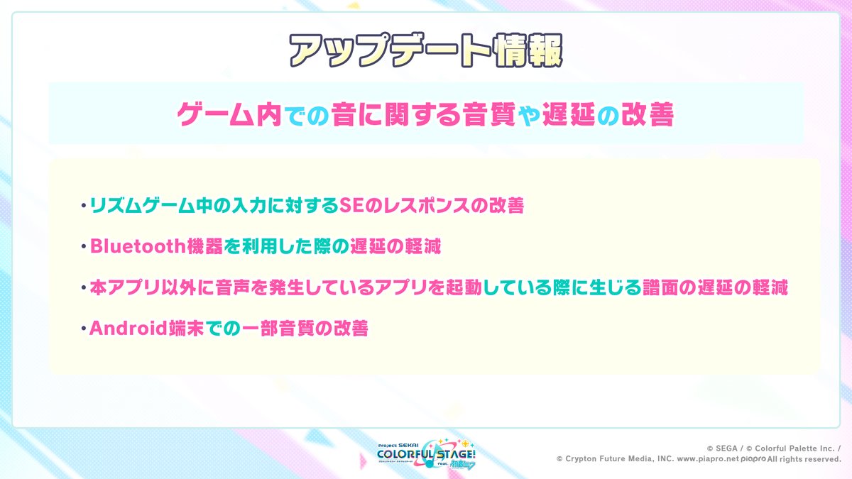 音に関する音質や遅延の改善📣