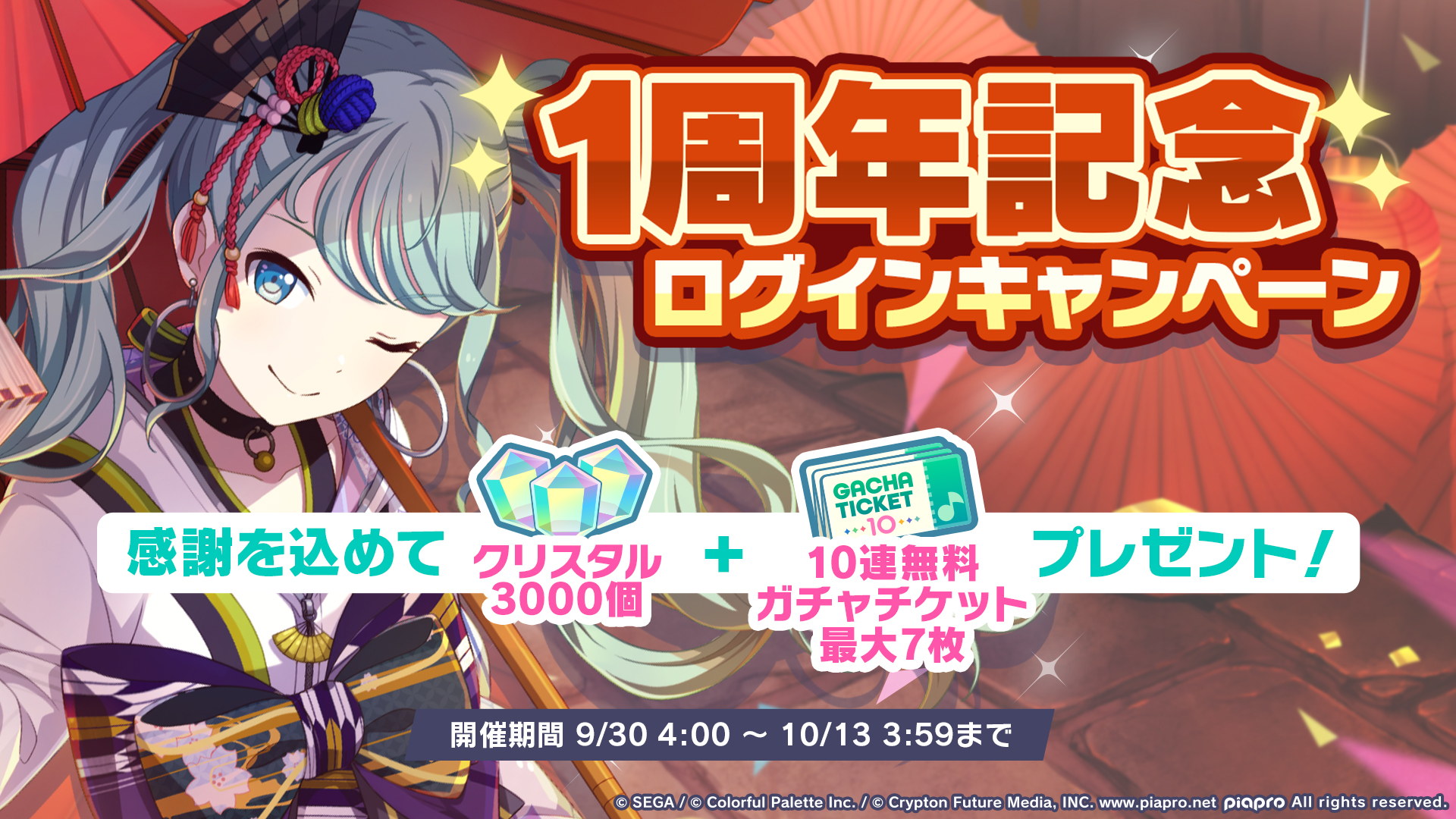 初日に「クリスタル×3000」「10連無料ガチャチケット×1」をプレゼント🎁