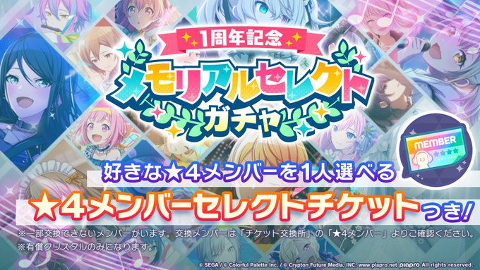 好きな★4メンバー1人を選んで交換できる「★4メンバーセレクトチケット」がついてくるガチャを開催いたします🌟