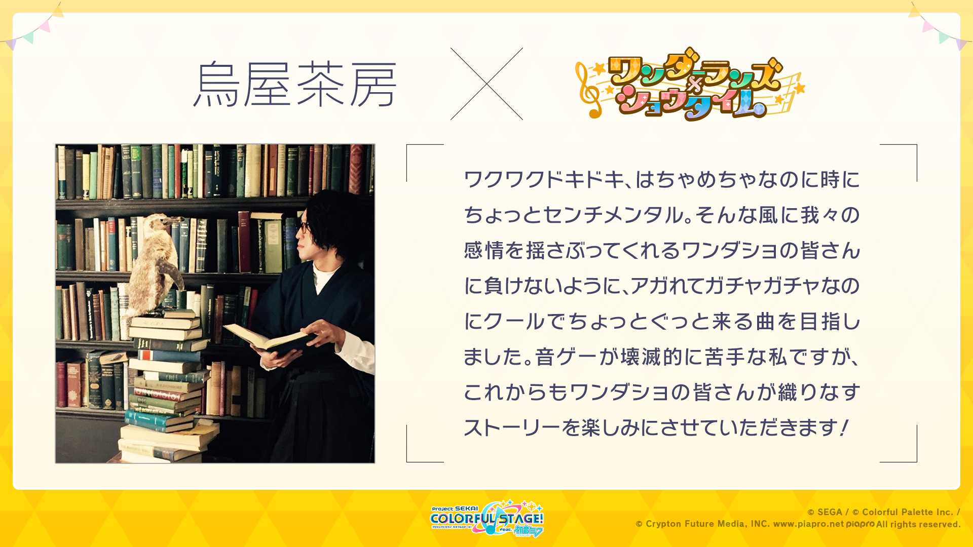 プロセカの世界に関わらせて頂くことができて光栄です。