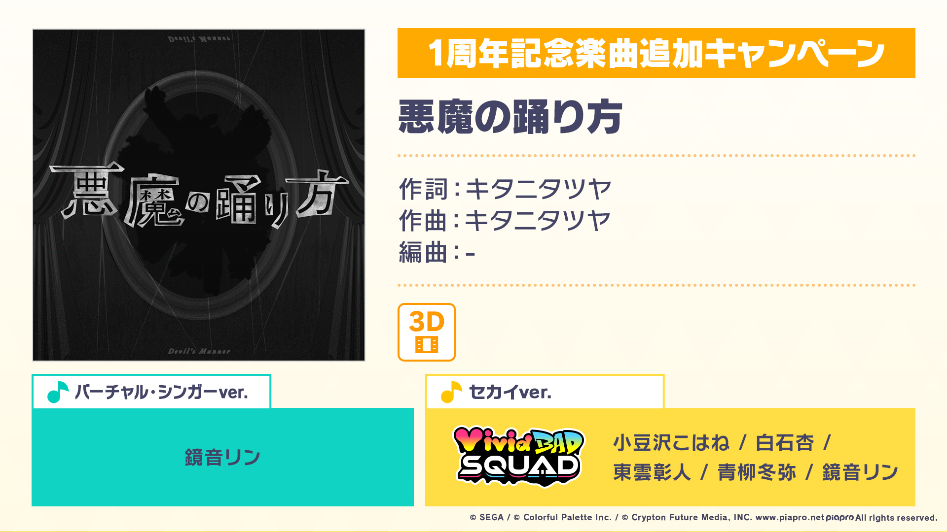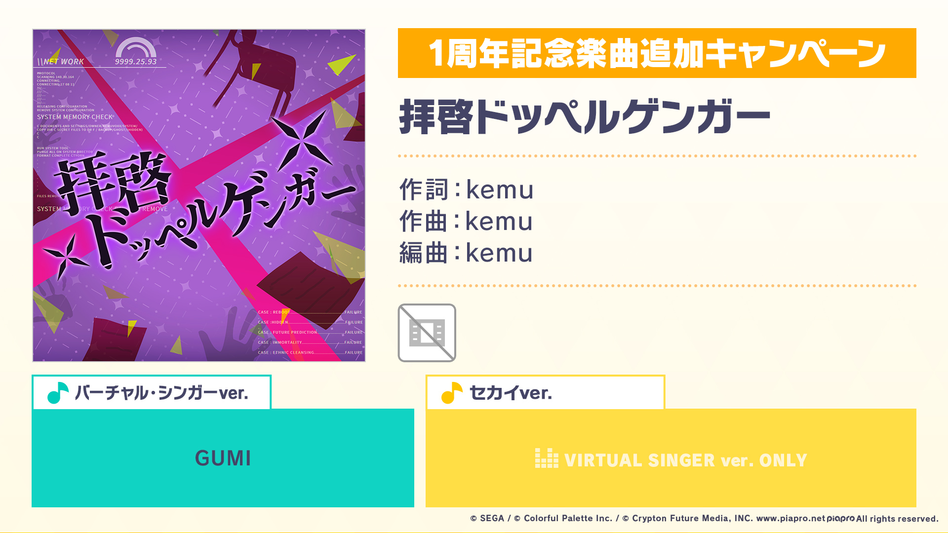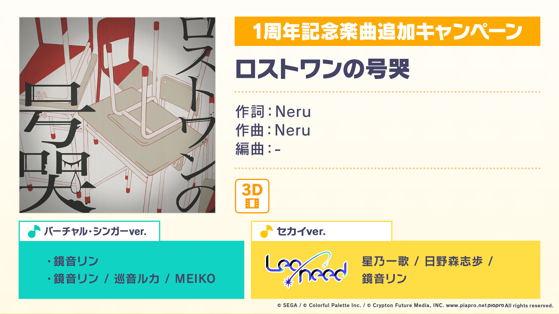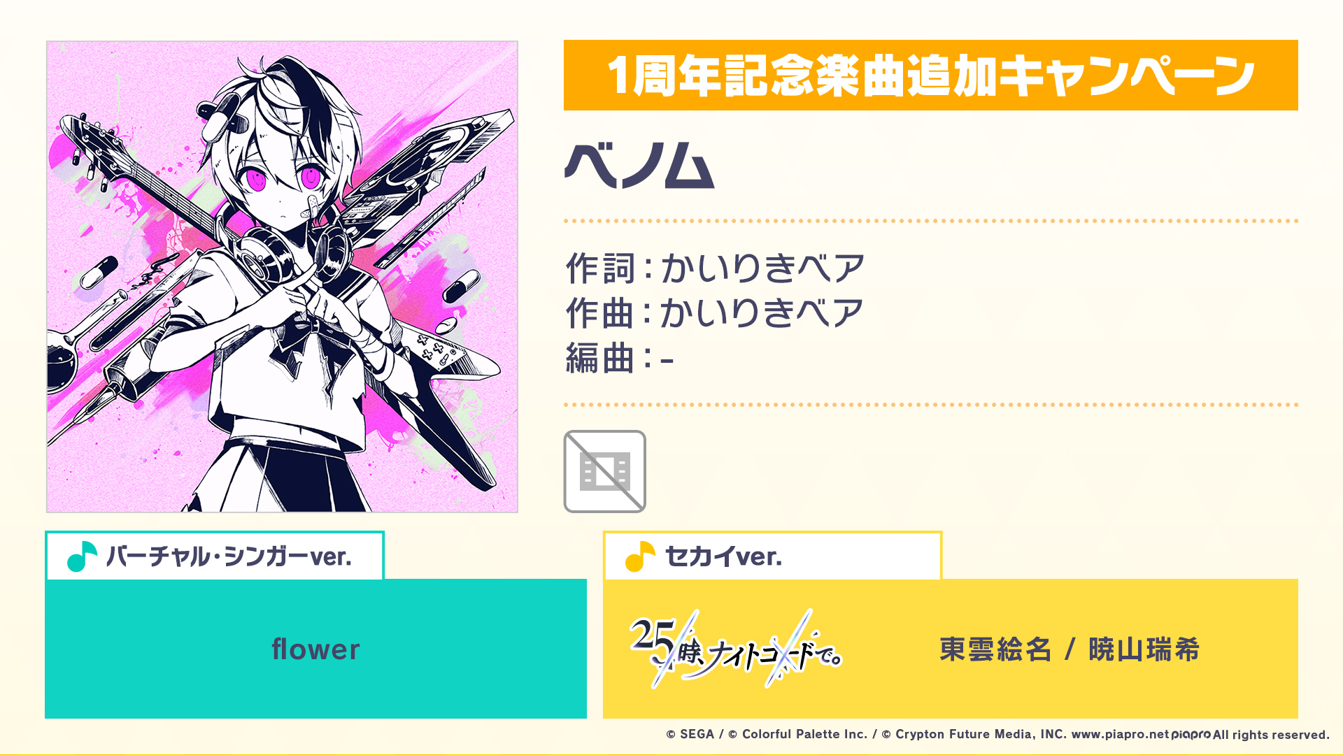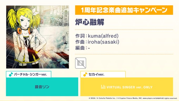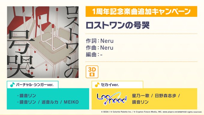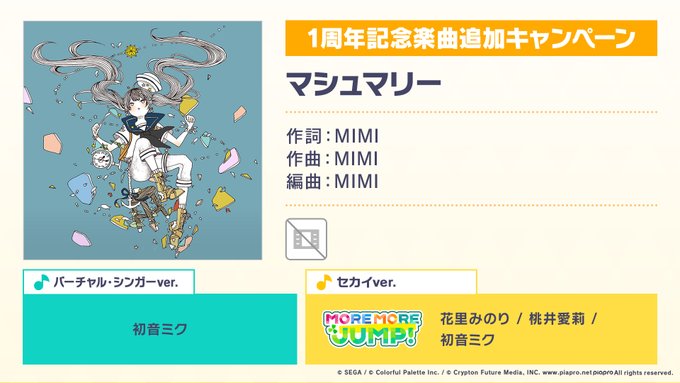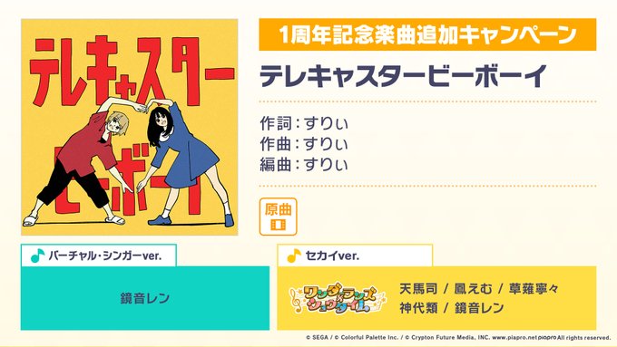 プロジェクトセカイ1周年を記念した、書き下ろし楽曲になります🎉