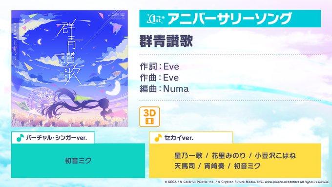 プロジェクトセカイ1周年アニバーサリーソングとして『群青讃歌』という曲を書き下ろしました。