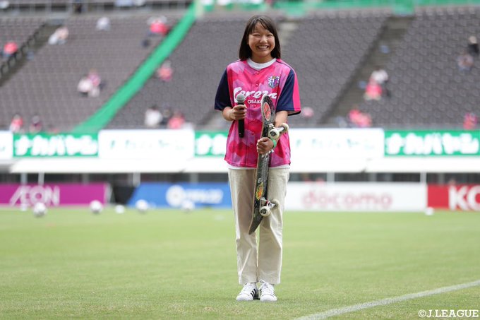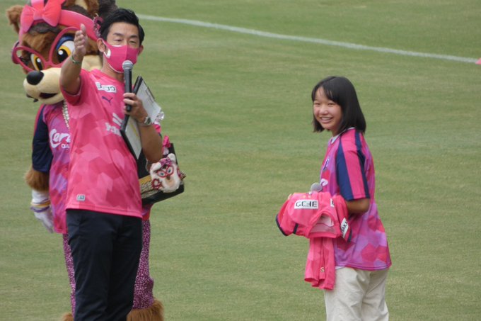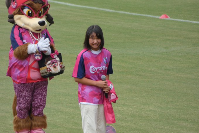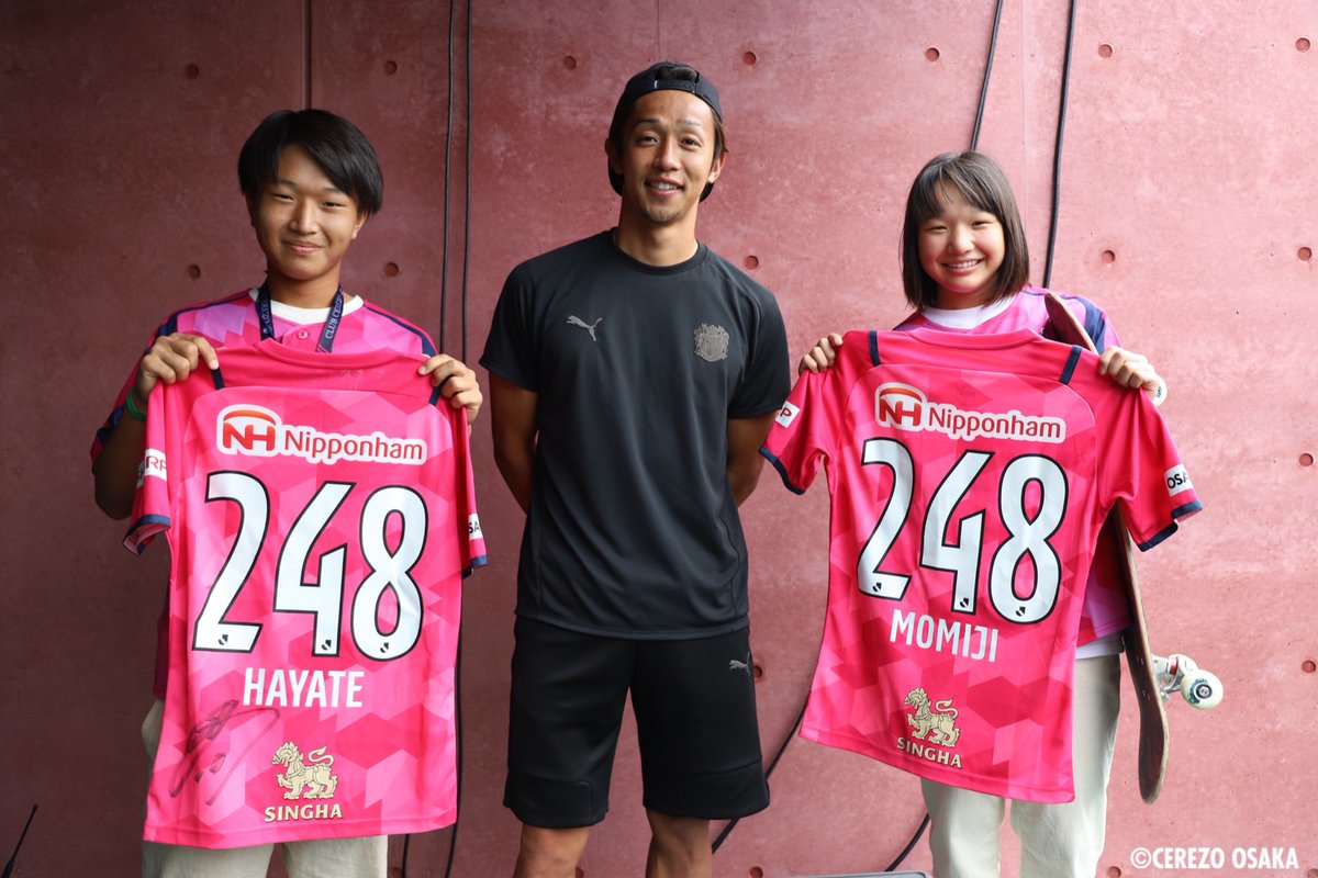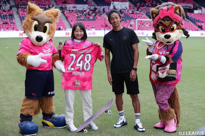 東京五輪金メダリスト #西矢椛 さんが #セレッソ大阪vs鹿島アントラーズ に来てくれました😆#セレッソ大阪 からは248「MOMIJI」のユニホームをキヨからプレゼント #cerezo ロビーとロビーナとも記念撮影 pic.twitter.com/pF3fDD6fNv