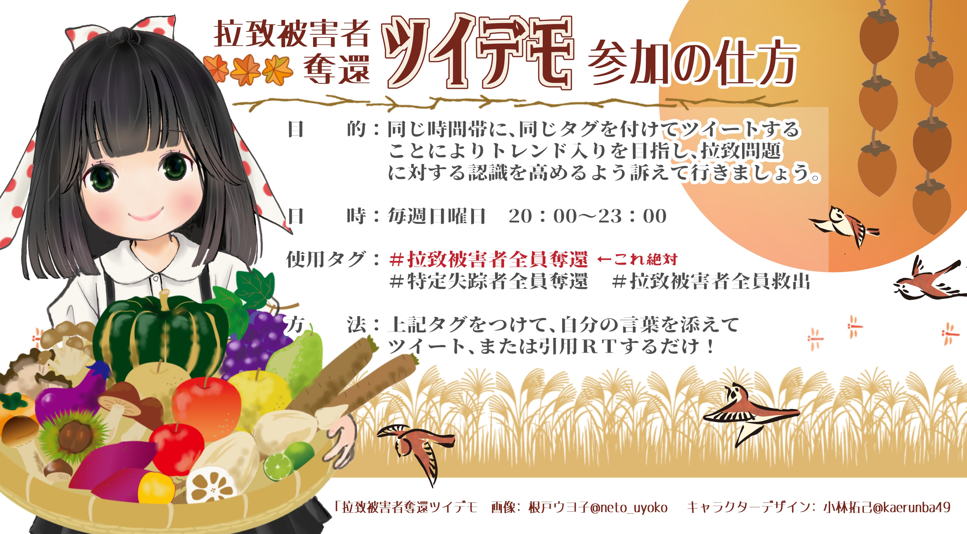 毎週(日)20時~23時まで、北朝鮮による拉致事件の早期解決を願って、ツイデモを行っています。