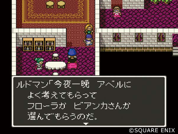 何度やってもフローラを選んでしまうわい、ン年後にDS版をプレイした時「今度こそ違う嫁を選ぼう!」と強い意志を持って主人公の名前をヨシヒコにした(感情移入しないように)のに、やっぱりフローラを選んでいましたね
