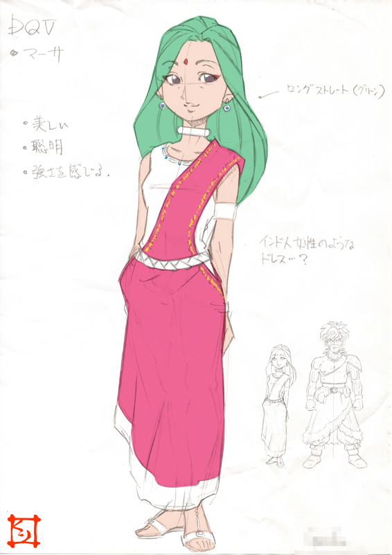 【蔵出しドラゴンクエスト】ドラクエ5より、マーサ/イメージラフ。満を持してのお母さんです。主人公、パパスとのバランスを考慮しオリエンタルな雰囲気を意識しています。グラフィックのコンセプトは、開発途中でかなり変わりましたね。※色は後乗せです。