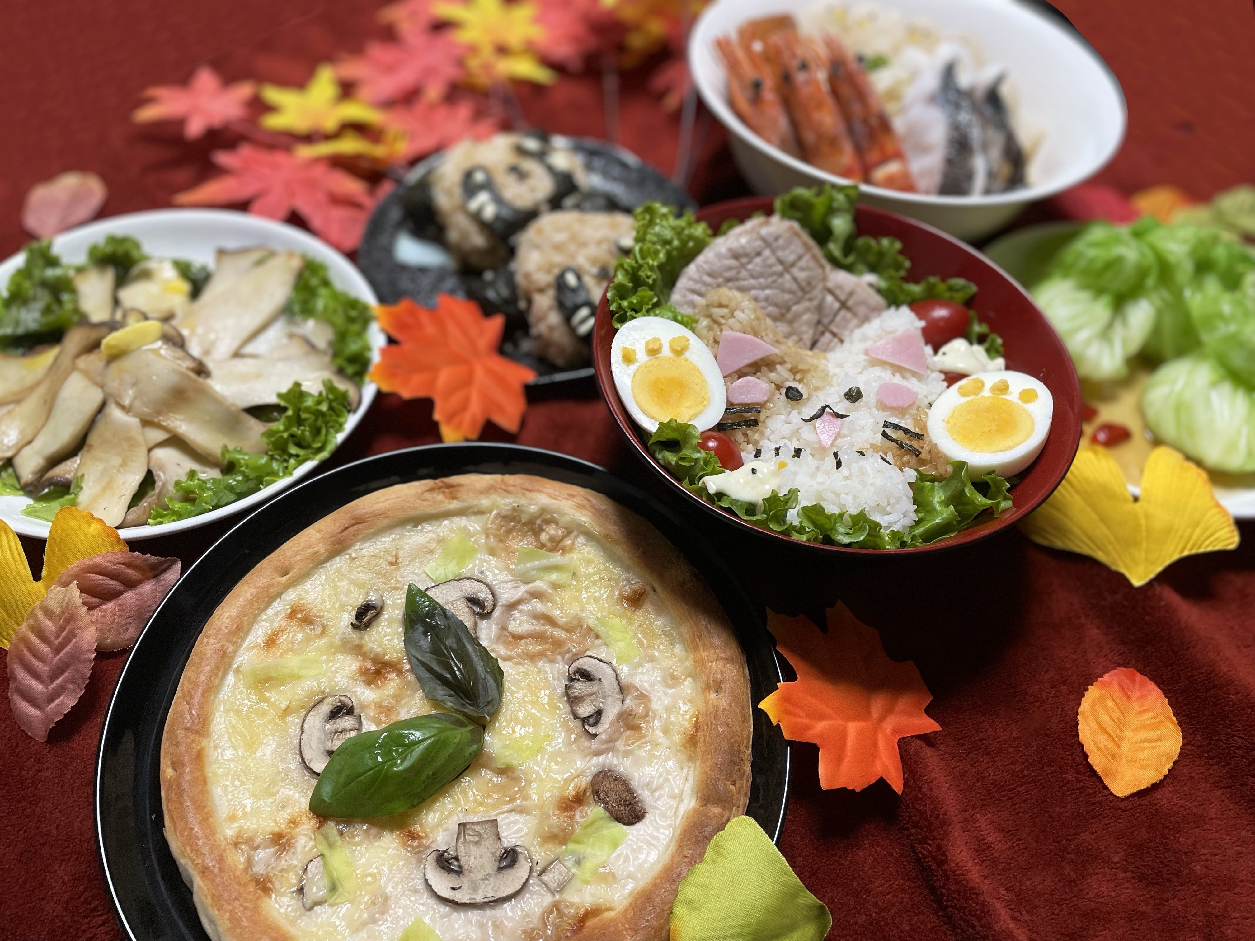 テーマの秋っぽいキノコの料理と食欲の秋に食べたい料理を各国2品ずつ作りました!
