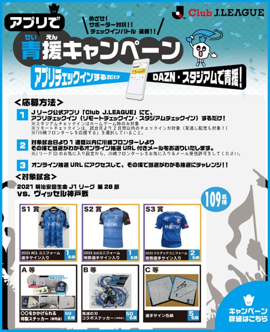 Jリーグアプリでのリモートチェックインをお忘れなく😆