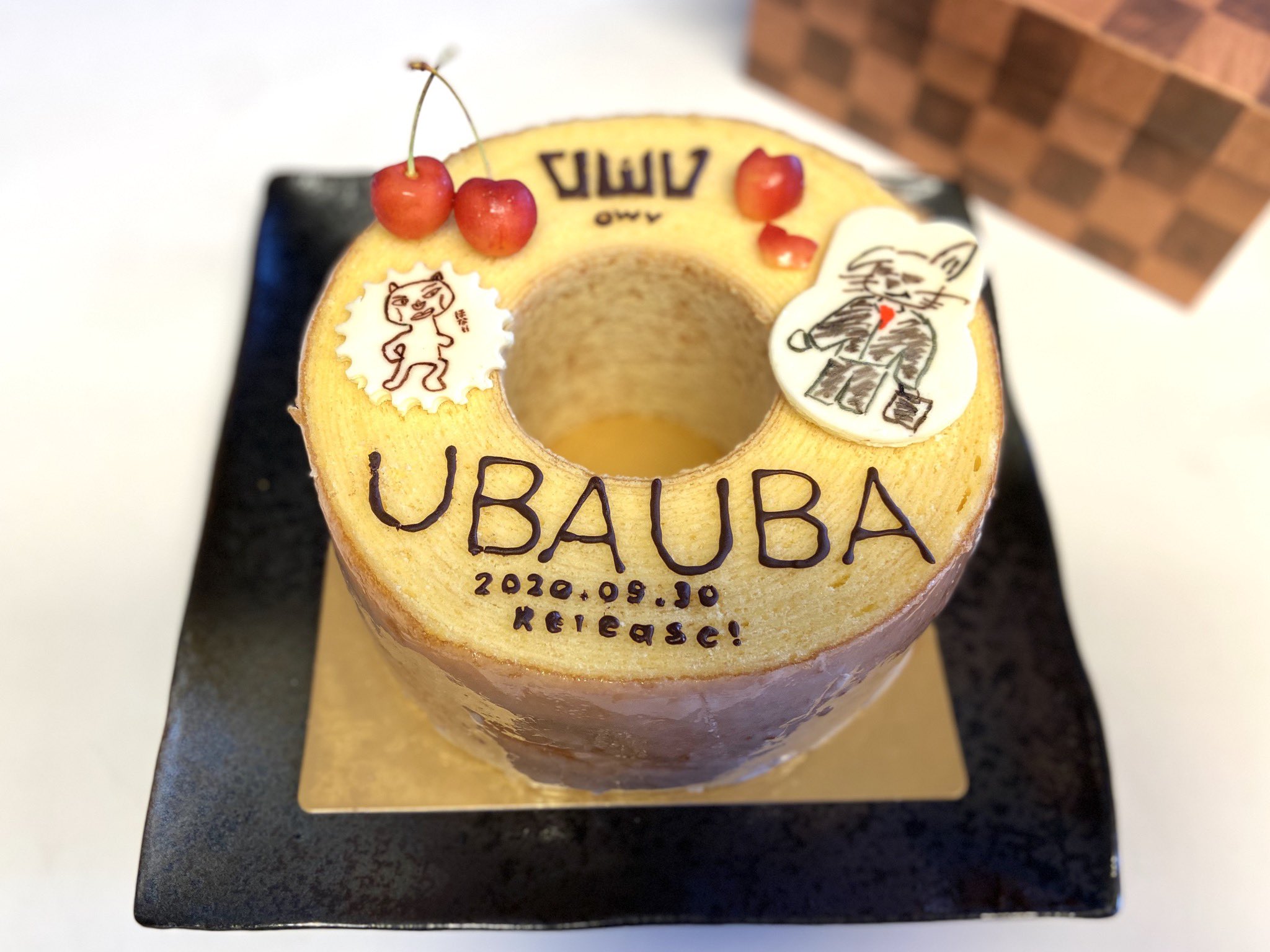 UBAUBAから1年!仕事前に聴いてどれだけ力をもらったか。これからもっとたくさんの人にOWVの曲が届きますように。去年デコったバームクーヘン📷