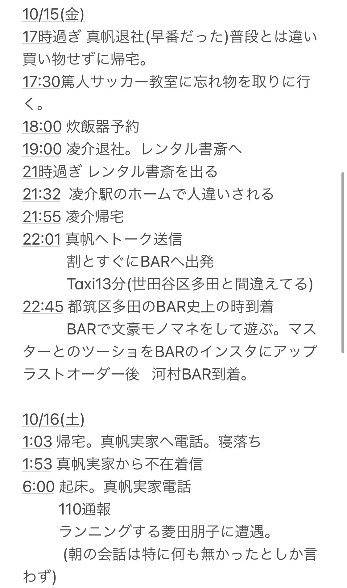 地図で家からバーまで車で13分なのにバー到着まで30分かかってる!家出る時は鞄を確実に持ってるけどバー到着時は手ぶら…