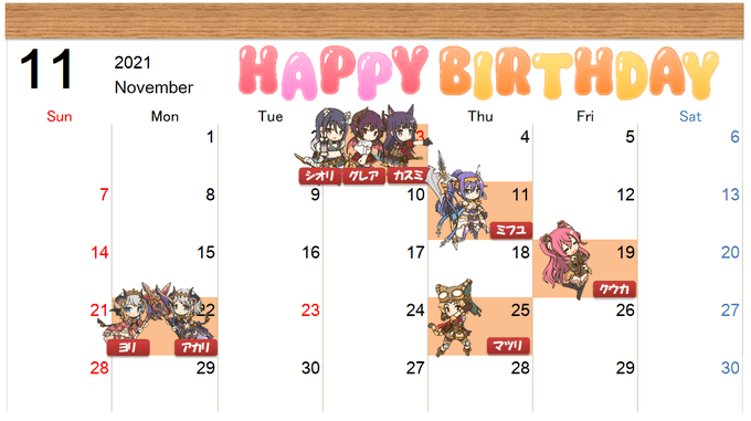 【11月クラバトスケジュール】