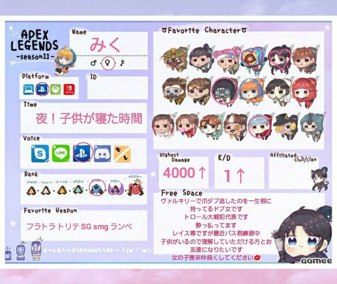 #Apex自己紹介カード