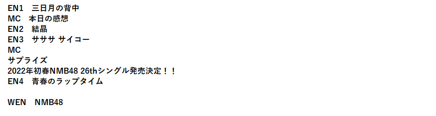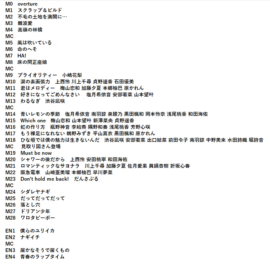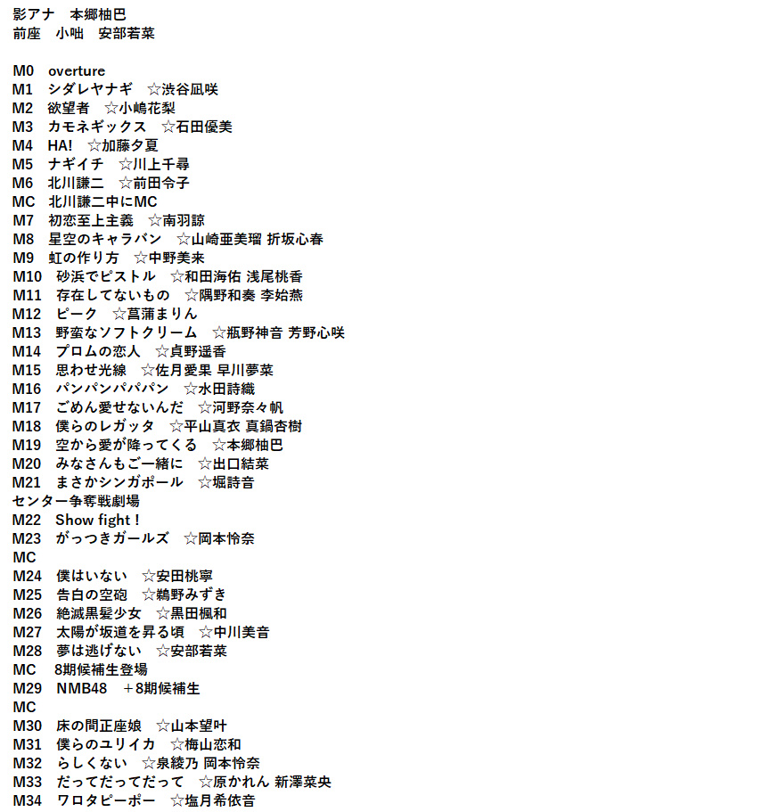 昼公演セトリ