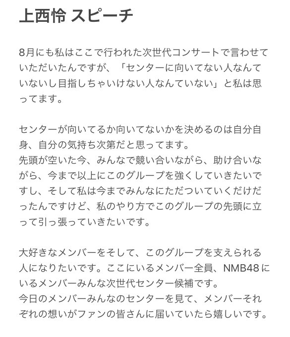 上西怜 センター曲前スピーチ